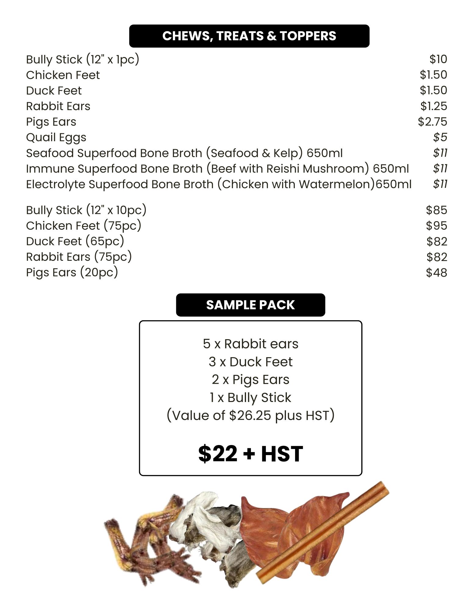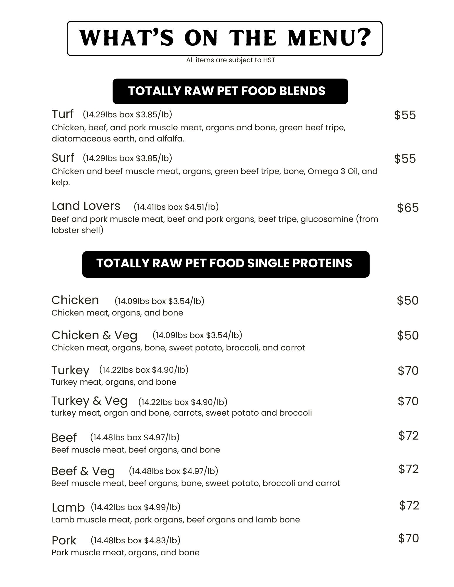 To order your raw food, please email us at info@thecrunchycanine.ca