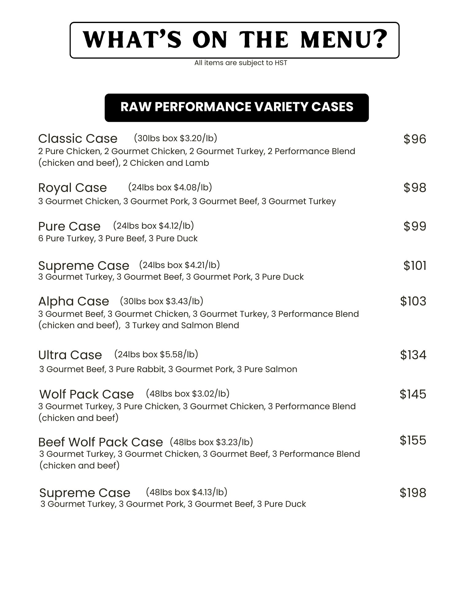 Best value per pound! The Wolf Pack Case is a mixed protein case totally 48lbs (12 x 4lb tubs).